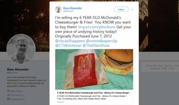 للبيع.. وجبة "ماكدونالدز" عمرها ست سنوات