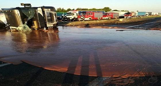 فوضى عارمة عقب انقلاب ” صهريج شيكولاتة “