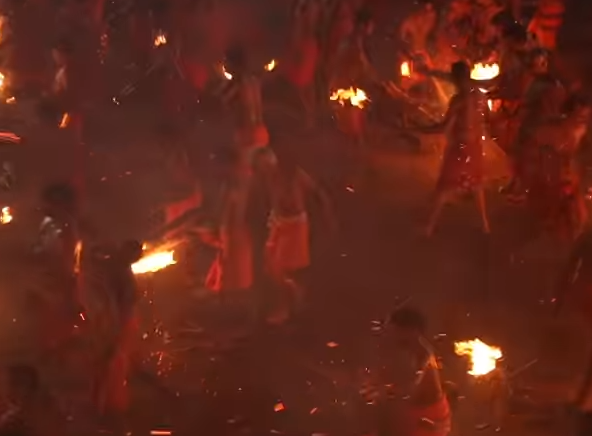 بالفيديو.. من غرائب الشعوب.. هنود يتراشقون بالنيران لتهدئة الآلهة دورغا