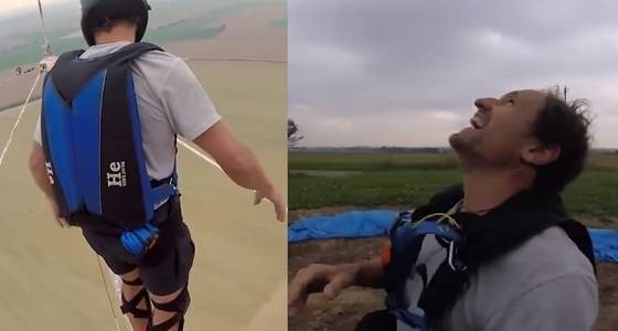 بالفيديو.. متهوران يقفزان من أعلى برج كهرباء
