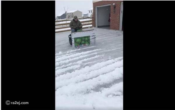 أمريكي يزيل الثلج من أمام منزله بطريقة غريبة جداً