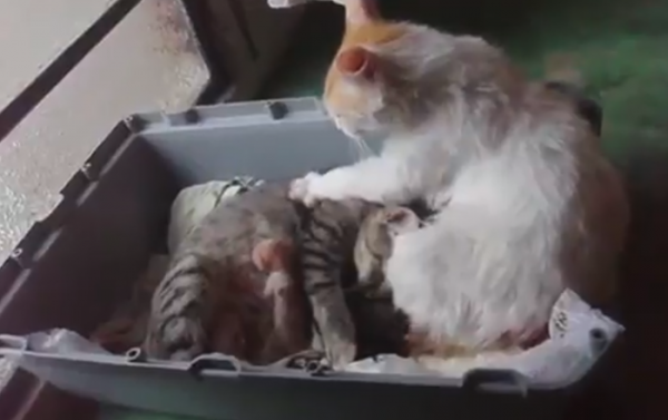بالفيديو…قط يثير ضجة بسبب رد فعله بعد ولادة زوجته