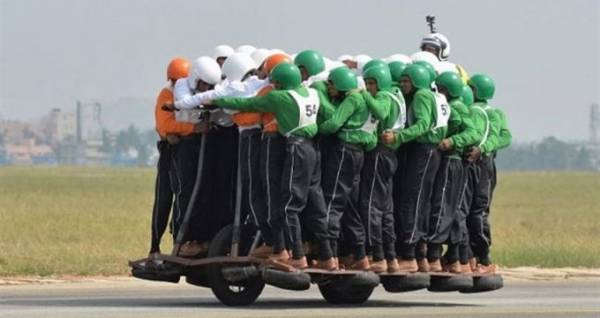 58 رجل هندي يركبون دراجة واحدة لأسخف سبب ممكن “فيديو”