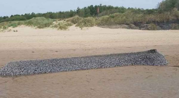 مخلوق غامض مغطى بالأصداف على سواحل بريطانيا..فيديو