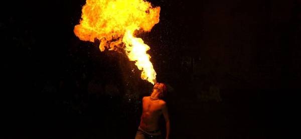 بالفيديو .. تنين بشري يحرق وجهه في مهرجان ترفيهي