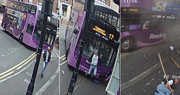 فيديو: حافلة من طابقين تصدم رجلاً بقوة بأحد شوارع بريطانيا.. المفاجأة بردة فعل الرجل