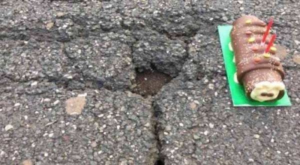 احتفال بعيد ميلاد (حفرة) بشارع أملا بإصلاحها