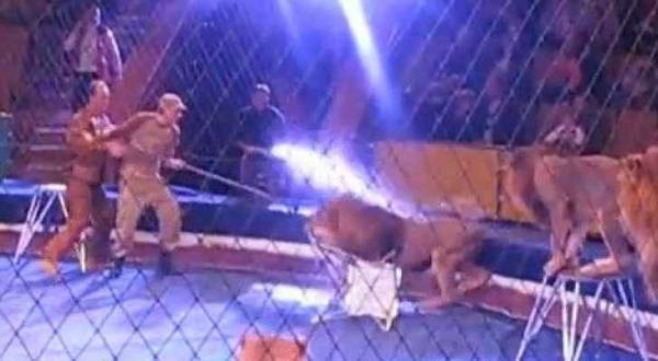 بالفيديو.. أسد يهاجم مدرب سيرك في أوكرانيا
