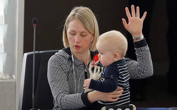 نائب سويدية تصحب طفلها الرضيع إلى البرلمان الأوروبي