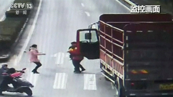 فيديو لرضيع تصدمه شاحنة بالصين فيخرج كالشعرة من العجين