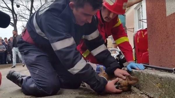 رجل إطفاء روماني يجري تنفسا اصطناعيا لكلب يحتضر