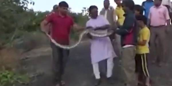 بسبب السيلفي.. ثعبانٌ ضخم يهاجم شخصاً حاول التقاط صورةٍ معه.. شاهد