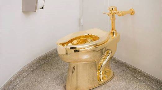 مرحاض من الذهب (عيار 18 قيراطاً) في نيويورك بالولايات المتحدة.