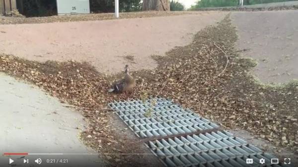 بطة تستنجد بعابر سبيل لانقاذ صغارها من حفرة صرف المياه... فيديو