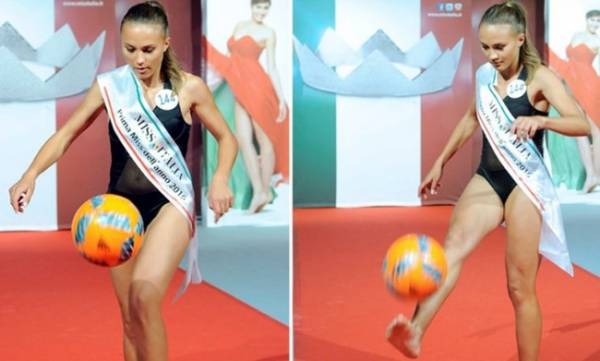 ملكة جمال إيطاليا 2016 تستعرض أمام الكاميرات مهاراتها في كرة القدم