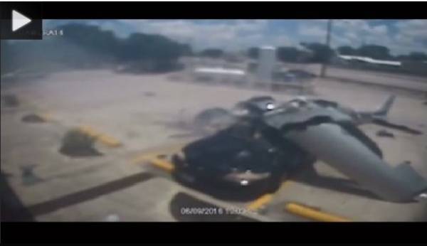 لحظة سقوط طائرة على سيارة ومصرع ركابها