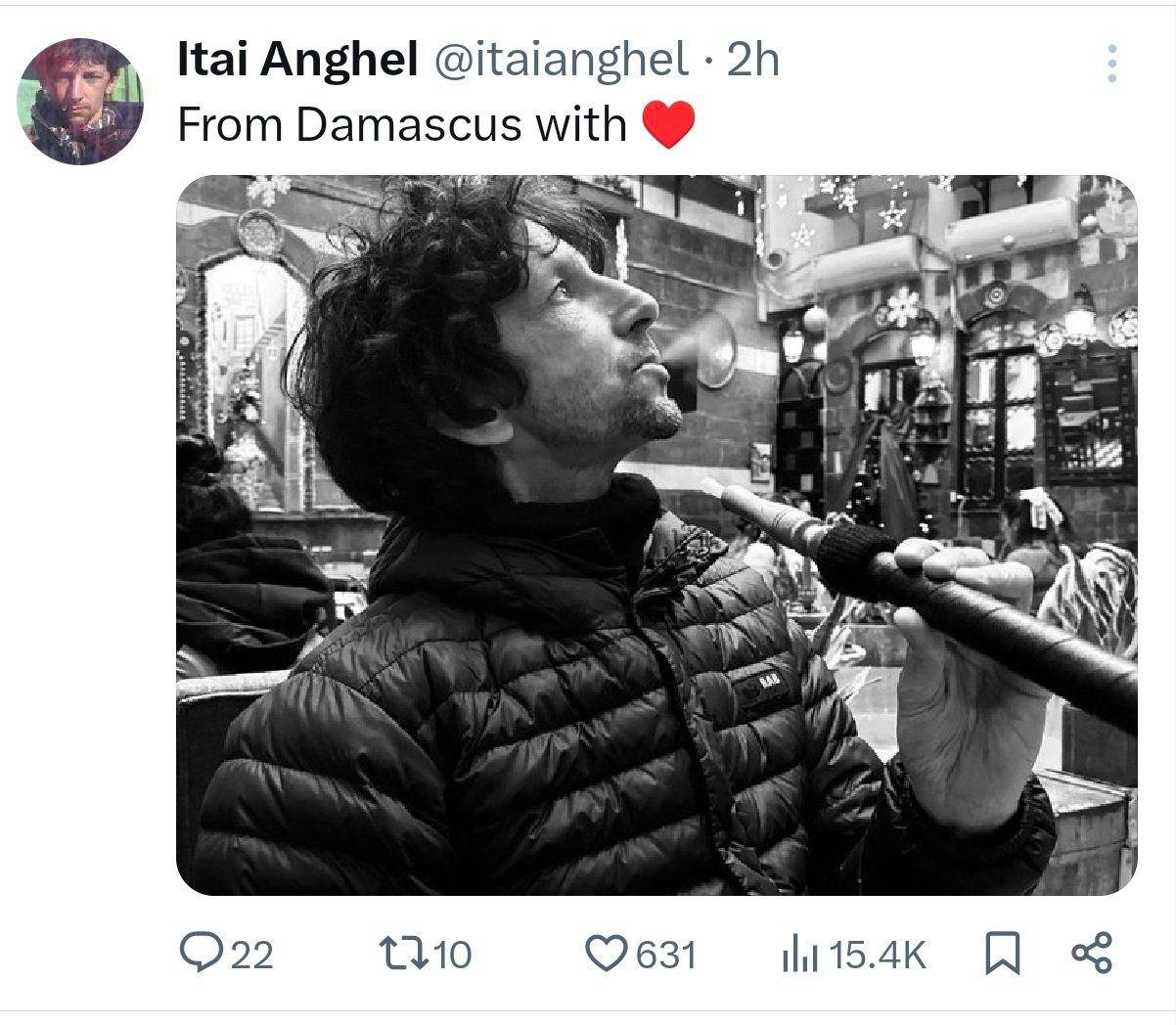 صحافي إسرائيلي يدخّن النرجيلة في دمشق... ويعلّق