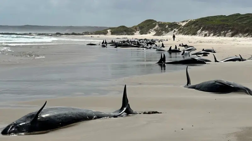 مشهد لا يصدق.. أكثر من 150 "حوتاً كاذبا" ممدداً على الشاطئ