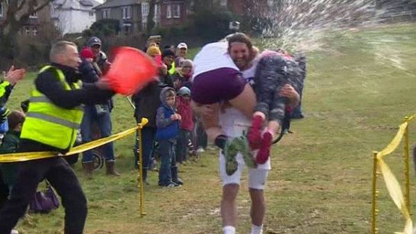 بالفيديو: "حمل الزوجات على الظهور" 380 مترا في إنجلترا