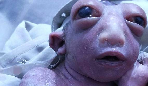 شاهد: مولودة بملامح "كائنات فضائية" تدفع أهالي قرية للاحتشاد لرؤيتها