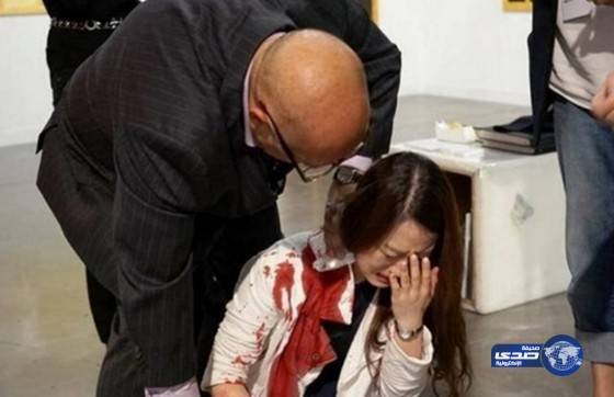 بالصور.. طعن امرأة في رقبتها داخل معرض فني والزوار يعتقدون أنه “تمثيل”