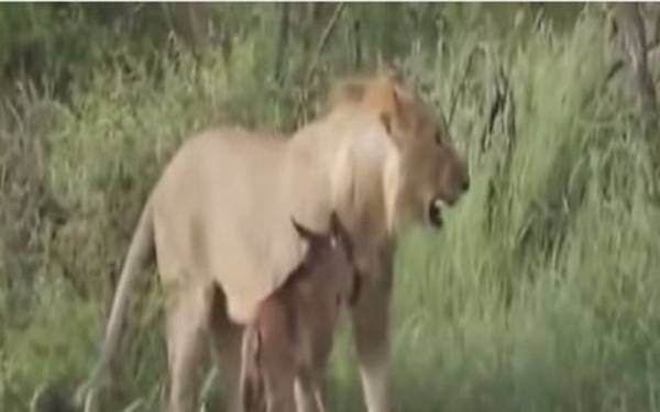 فيديو.. أسد يرفض افتراس عجل صغير استغاث به