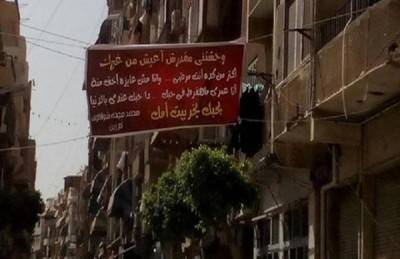 زوجة تصالح زوجها بلافتة كتب عليها “بحبك يخرب بيت أمك”