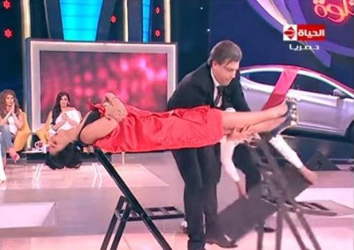 بالفيديو : ساحر لبناني ينوّم الفنانة «ميس حمدان» مغناطيسياً.. ويحولها إلى خشبة!