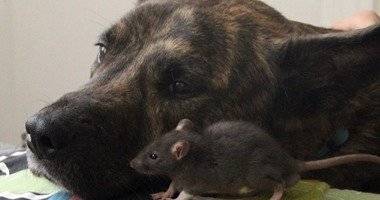 بالصور.. صداقة غير عادية تجمع "فأر" بـ"كلب"