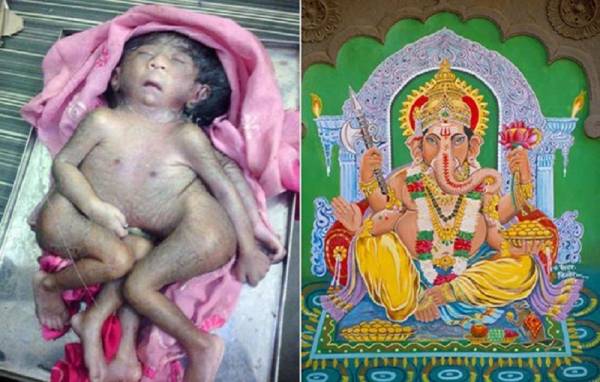 ولادة طفل بـ8 اطراف والاف يتوافدون للتبرك به