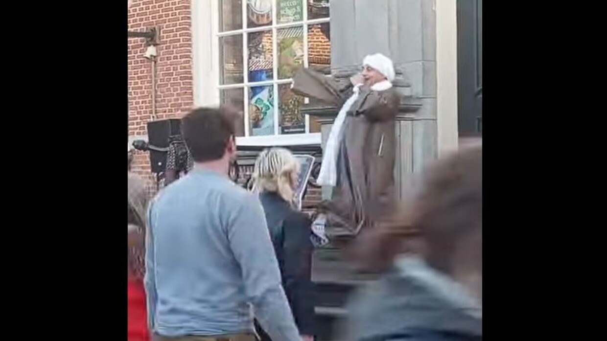 مصري بلباس شعبي يؤدي رقصة "صوفية" في أحد شوارع العاصمة الهولندية أمستردام