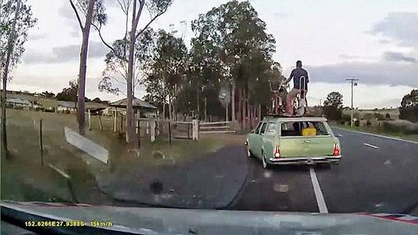 فيديو: رجل متهور يقود دراجة مثبتة أعلى سيارة