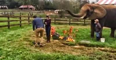 بالفيديو.. شاب يطلب يد حبيبته مستعيناً بفيل