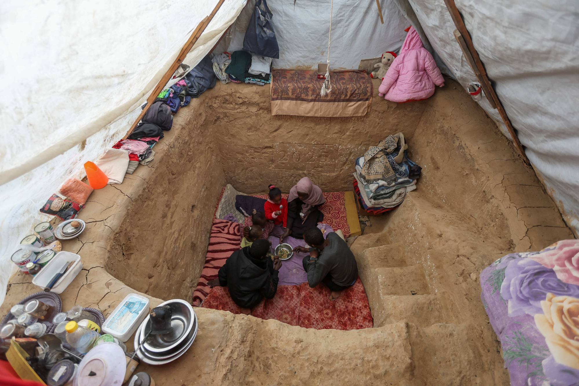 عائلة فلسطينية تعيش في حفرة بعمق مترين تقريباً للاحتماء فيها من البرد والمطر في الشتاء