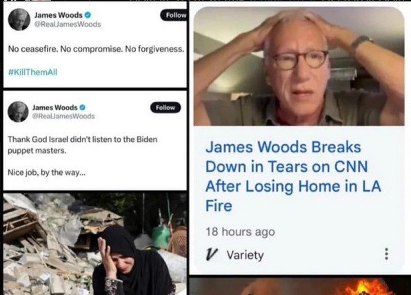 عدالة السماء أم لعنة غزة؟.. ممثل أمريكي طالب بإبادة الفلسطينيين يبكي بعد احتراق منزله