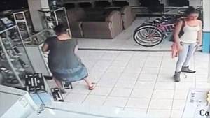 فيديو غريب.. امرأة تسرق شاشة تلفزيون وتخبّئها أسفل ملابسها !!!