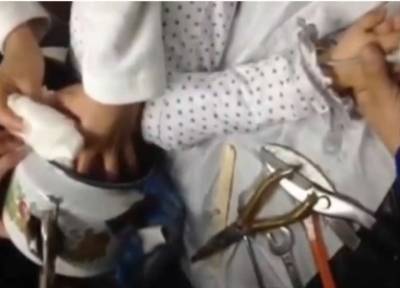 بالفيديو: لحظة تحرير رأس طفلة من داخل إبريق شاي..!