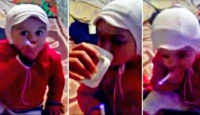 فيديو: امرأة تعلم طفلتها التدخين وشرب القهوة