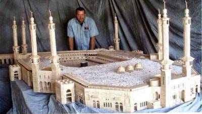 الأمريكي ستان مونرو يبني مجسماً في غاية الدقة والروعة للمسجد الحرام بواسطة أعواد الأسنان.