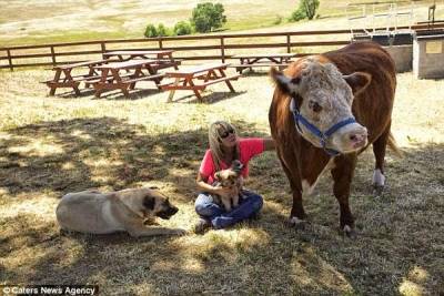 بالفيديو والصور : بقرة تعتقد نفسها كلبة
