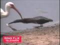 شاهد بالفيديو طائر غريب يصيد السمك مثل الانسان
