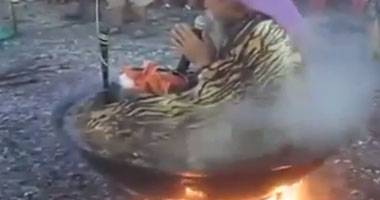 بالفيديو.. رجل مُسن "يطبخ نفسه" فى إناء به ماء مغلى