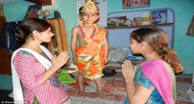 بالفيديو.. قرية هندية تعبد طفلا لاتصاله بأحد آلهتهم!