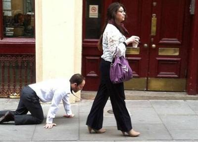 بالصور.. امرأة تسحب رجلا بسلسلة وهي تتجول في احدى الشوارع