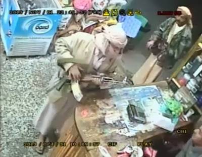 بالفيديو.. سطو مسلح بالرشاشات على بقالة .. شاهد كيف دافع البائع الشجاع عن نفسه