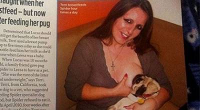 شاهد لن تصدق.. أمريكية ترضع كلبها!!