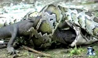 بالفيديو : انتقاما لقتل ابنائه ثعبان كبير يلتهم تمساح