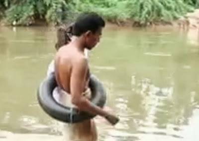 بالفيديو.. معلم يذهب يومياً للمدرسة ..سباحة!