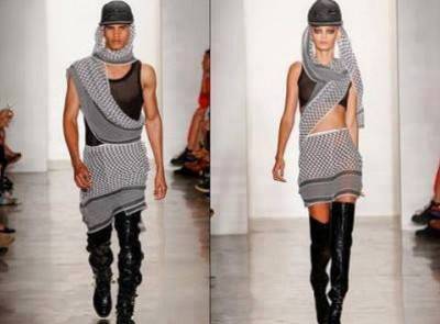 غضب شديد : مصمم اميركي يستخدم الكوفية الفلسطينية بأزيائه المستوحاة من "الربيع العربي"