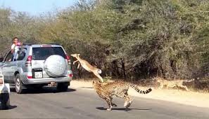 بالفيديو..غزال يقفز داخل سيارة..وينقذ نفسه من "فهدين"